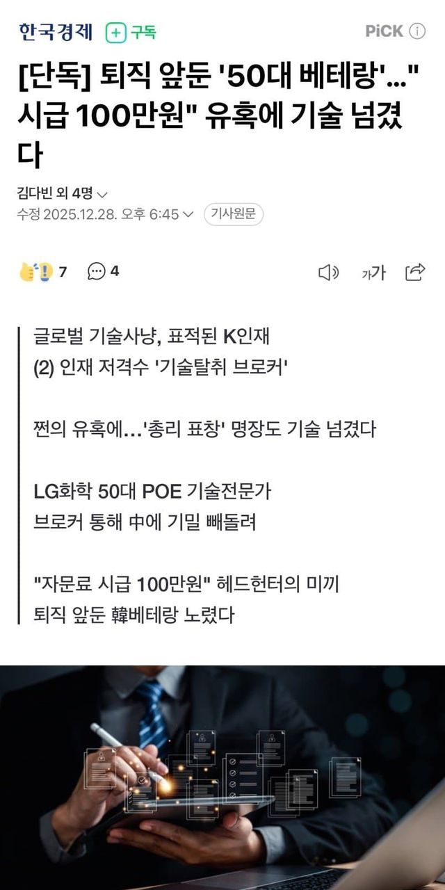 퇴직 앞둔 나거한 ㅈ팔육 기술자, 시급 100만원 유혹에 기술 넘겼다