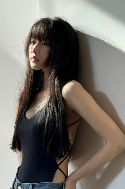 전신 컷에서는 과감한 스타일링이 돋보였다. 옆라인이 끈으로 연결된 백리스 보디슈트에 데님을 매치해 탄탄한 실루엣을 강조하는가 하면, 화려한 퍼 재킷과 롱부츠를 매치한 착장으로는 힙한 매력을 발산했다.