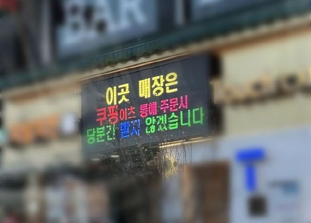 29일 스레드에 따르면 최근 인천 치킨집의 전광판에는 ‘이곳 매장은 쿠팡이츠 통해 주문 시 당분간 받지 않겠습니다’라는 문구가 적혀 있다.