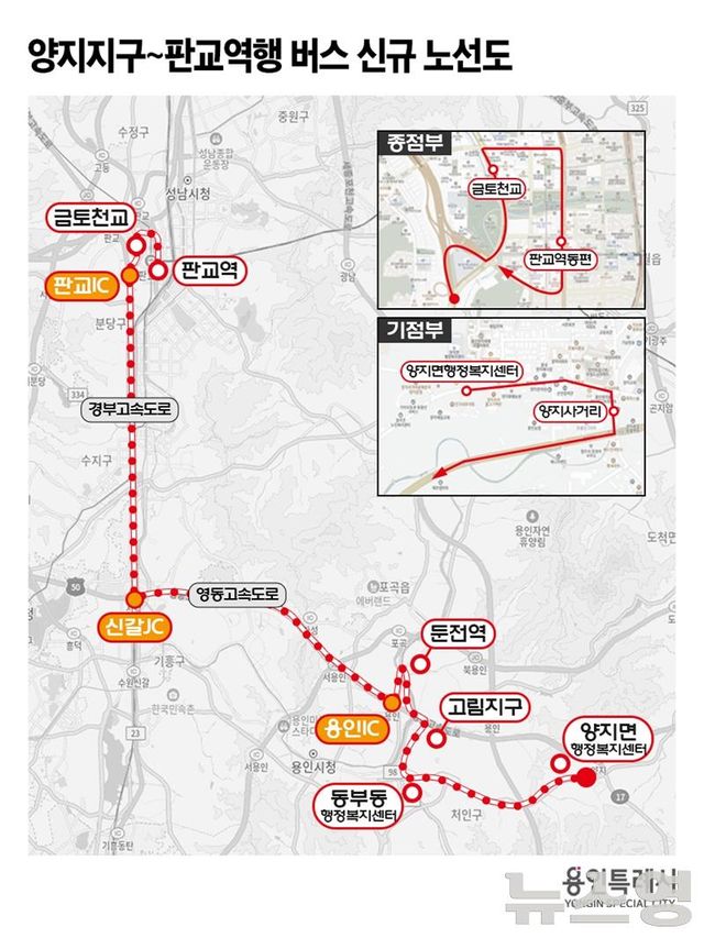 (뉴스영 이현정 기자) 용인 양지지구를 출발해 고림동과 둔전역을 거쳐 성남 판교역까지 운행하는 버스 노선이 확정됐다.
