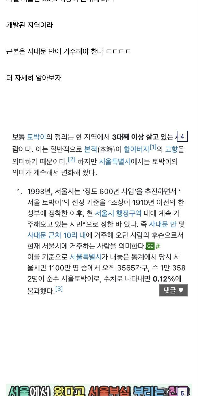 서울토박이들은 지금 1만명도 안됨 ㄷㄷㄷㄷ