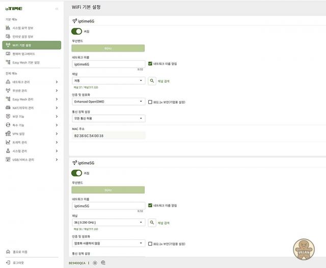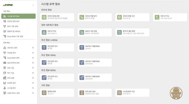 UI 구성은 기존 아이피타임 사용 형식을 그대로 이어받았다. 메뉴 구조도 익숙하고, 한글 설명은 여전히 친절하다. 새로운 규격을 지원하지만, 사용 방식까지 새로 학습할 필요가 없을 정도로 같다. 아이피타임 공유기에 대해 우리가 국민 공유기라고 표현하는데, 괜히 붙은 것은 아니라는 생각이 든다.