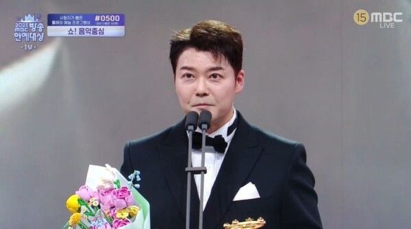 지난 29일 서울 상암동 MBC 미디어센터에서 열린 2025 MBC 방송연예대상은 전현무와 장도연의 공동 사회로 진행됐다. 이날 전현무는 대상 후보에게 주어지는 올해의 예능인상의 첫 번째 수상자로 지목되어 무대에 올랐다.