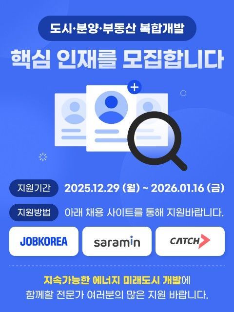 모집 대상은 전 분야 경력직으로, 직무 특성에 따라 세분화해 선발한다. 주요 모집 분야는 ▲도시개발 ▲토지판매 ▲투자유치 홍보 ▲주택개발 등이다. 지원 자격은 각 직무별 실무 경험을 보유한 자로, 관련 프로젝트 수행 이력과 직무 전문성을 종합적으로 갖춘 인재를 우대한다.