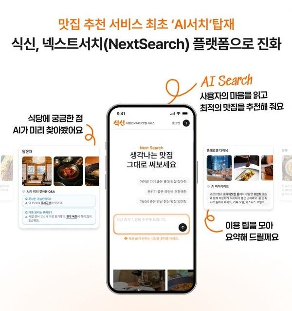 푸드테크 기업 식신이 자사 서비스에 인공지능(AI) 기반 검색 기능을 도입해 '맛집 넥스트 서치(Next Search)' 플랫폼으로 전면 개편했다고 29일 밝혔다.