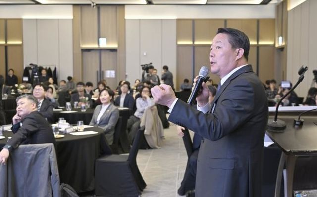 | ▲ 최영일 순창군수가 농어촌 기본소득 시범사업 성과창출 협의체 출범식에서 송미령 농림축산식품부 장관과 전문가들이 참석한 가운데, 순창형 기본소득 모델과 농촌 기본사회 비전을 발표하고 있다 |