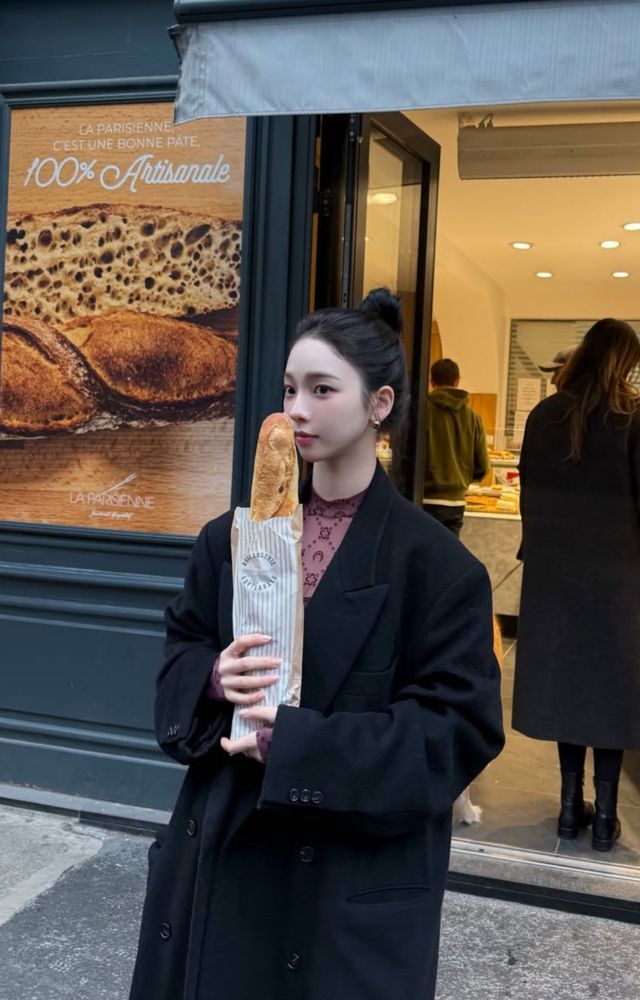 사진 속 카리나는 프랑스 파리의 베이커리 앞과 에펠탑 인근에서 바게트를 들고 카메라를 응시하고 있다. 살짝 찡그린 눈썹과 무심한 표정은 장난기와 도도함을 동시에 담아내며 사진에 생동감을 더한다.