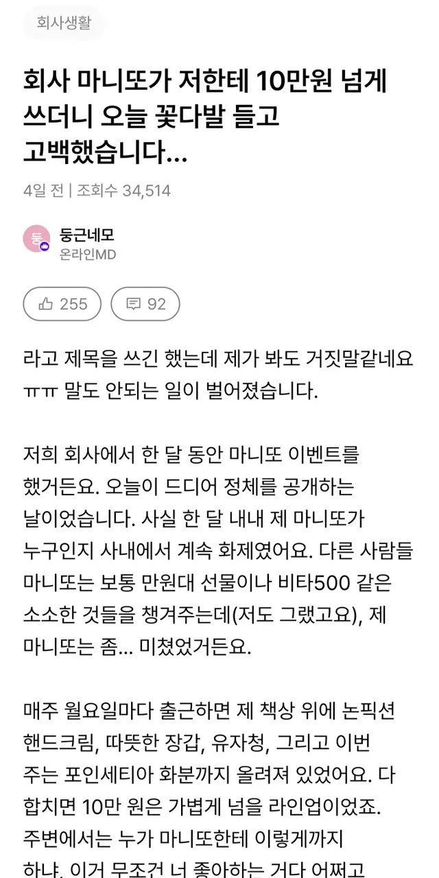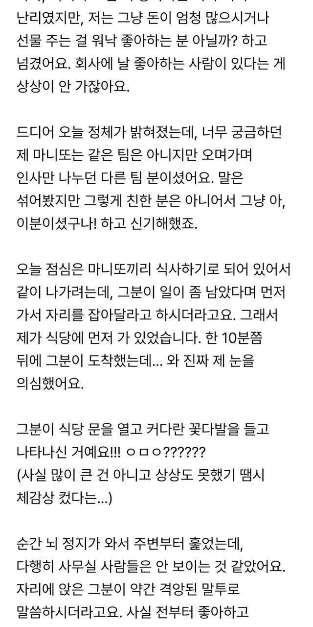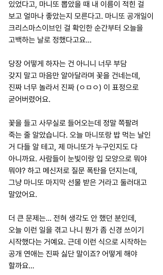 회사 마니또가 10만원 넘게 쓰더니 오늘 나한테 고백함,,