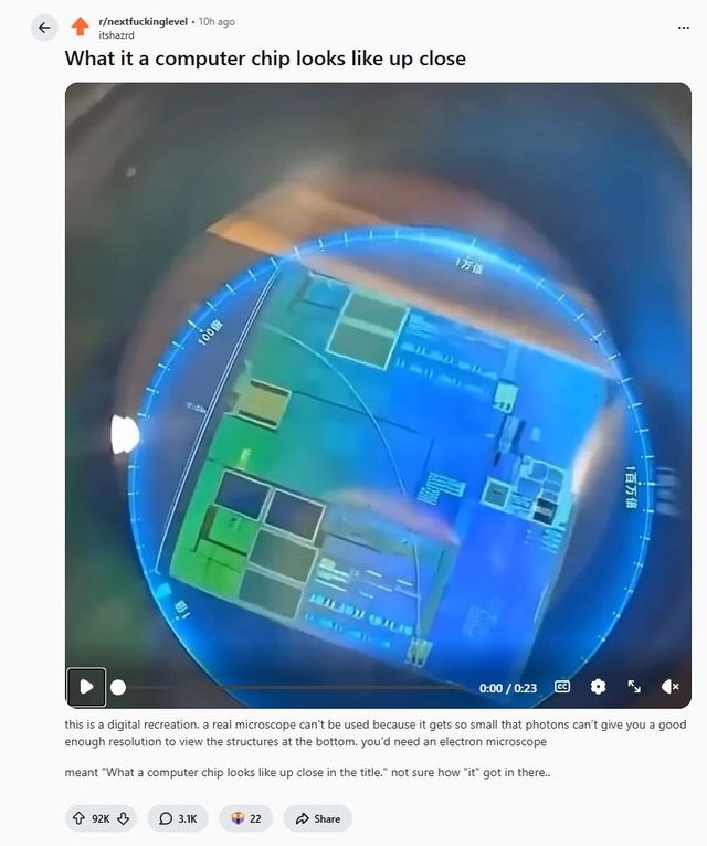 아이폰 프로세서 칩을 현미경으로 계속 확대하는 영상