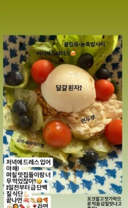 앞서 박하선은 “저녁에 드레스 입어야 한다. 3일 전부터 급 단백질 식단”이라는 글과 함께 달걀 흰자와 버터헤드 레터스, 올리브유와 농축 발사믹, 연두부 등으로 구성된 샐러드 식단을 올렸던 바 ‘긴급’ 다이어트 성공 후 기쁨을 누렸다.