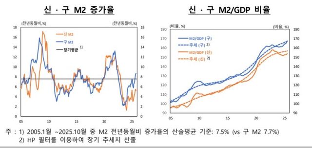 한은은 내년 1월 공표되는 '2025년 11월 통화·유동성' 통계부터 신 기준의 통계만 공표할 예정이었으나, 최근 통화지표에 대한 관심이 커진 점 등을 감안해 새 지표와 기존 지표를 향후 1년간 병행해 발표하기로 했다.
