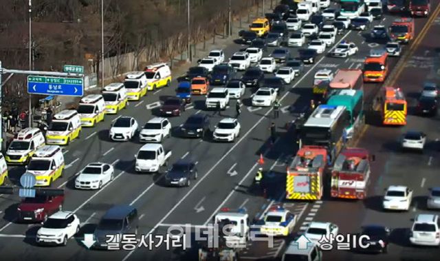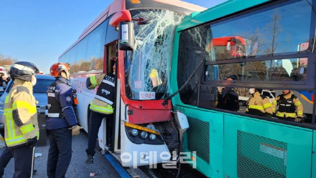 30일 소방당국에 따르면 이날 오후 1시 2분께 서울 강동구 길동생태공원 앞 교차로 사거리에서 버스 3대와 스포츠유틸리티차량(SUV) 1대가 부딪히는 사고가 발생했다.