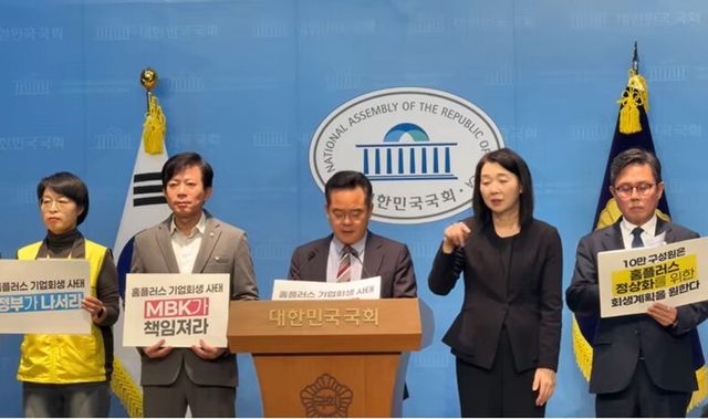 30일, 전국민주노동조합총연맹 산하 마트노조와 더불어민주당 을지로위원회는 서울 여의도 국회에서 기자회견을 열고 “MBK의 회생안은 ‘시한부 청산 계획’”이라며 “기업을 살리기 위한 합리적 구조조정은 논의할 용의가 있지만, 대주주 책임 회피를 위한 청산에는 결사 반대한다”고 밝혔다.