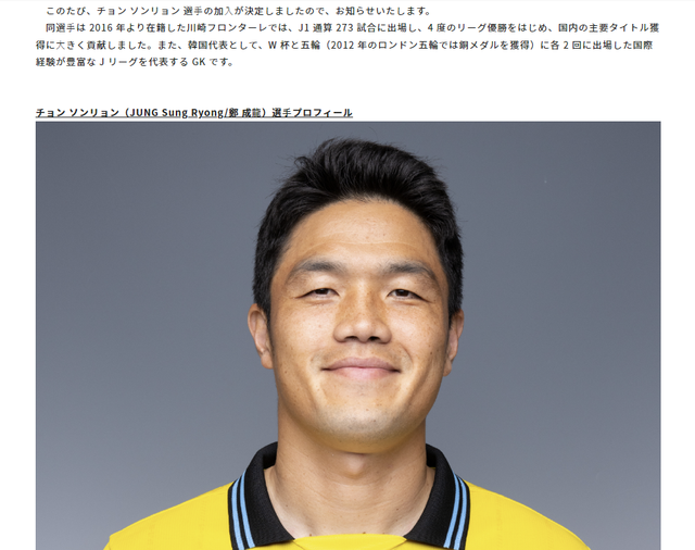 후쿠시마의 파격적인 영입 행보는 미우라에서 그치지 않았다. 앞서 후쿠시마는 가와사키 프론탈레와 10년 동행을 마친 한국 출신 골키퍼 정성룡 영입을 발표했다.