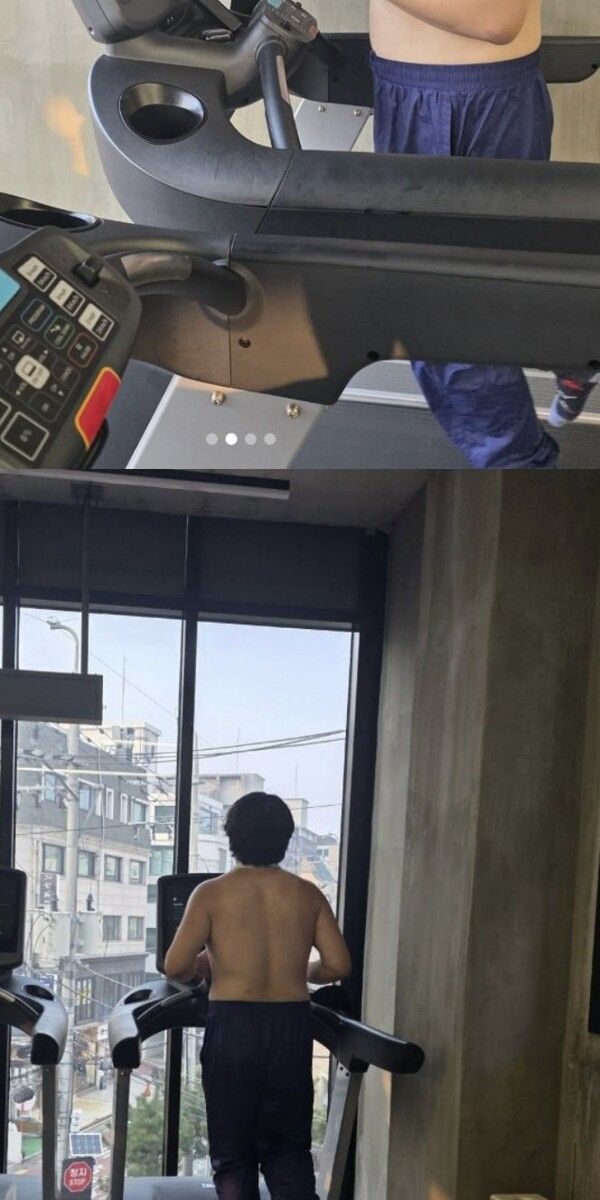 그가 상의를 탈의하고 러닝머신을 뛰는 모습도 볼 수 있다.