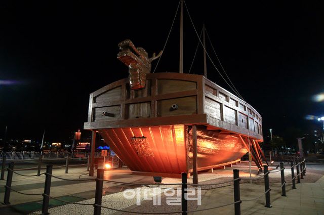진남관에서 바다 쪽으로 내려오면 환히 불을 밝힌 이순신 광장이 시야에 들어온다. 광장 끝으로 걸어가면 거북선 한 척이 오렌지색 조명을 입고 육지에 정박해 있다. 2017년 특허청이 ‘우리나라를 빛낸 발명품’을 설문 조사한 결과 거북선은 훈민정음에 이어 2위로 선정되기도 했다. 열세였던 임진왜란의 전황을 뒤집은 최종 병기 거북선은 여수에서 건조·진수되었다고 전해지는 만큼 이 자리에서 더욱 특별한 감흥을 전한다.