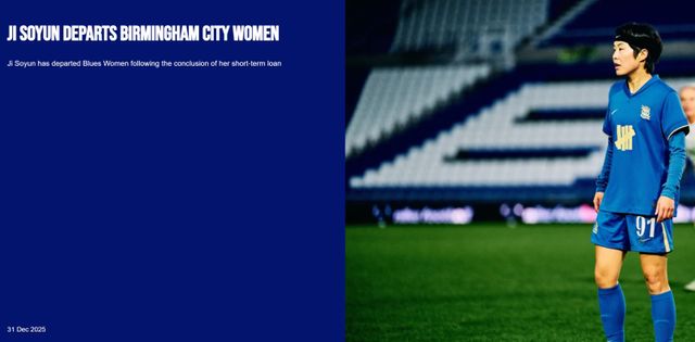 버밍엄은 31일(한국시간) 공식 홈페이지를 통해 “단기 임대 계약이 끝난 지소연이 구단을 떠나게 됐다”며 “그는 해외 생활을 마무리하고 한국으로 돌아갈 예정”이라고 전했다.