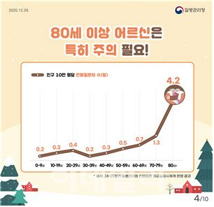 31일 질병관리청 한랭질환 응급실감시체계에 따르면 지난 1일부터 가동된 2025~2026절기 운영 결과 28일까지 총 106명의 한랭질환자가 보고됐다. 이는 전년도 같은 기간(107명)과 비슷한 수준이다. 사망자는 3건으로 전년과 같다.