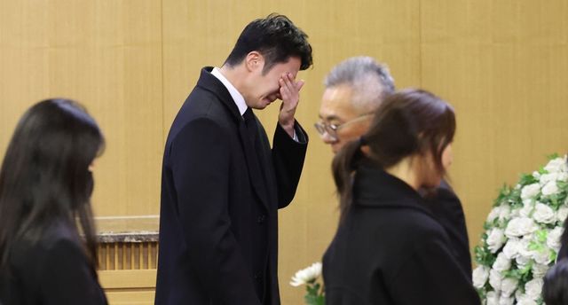 이순재 영결식에 참석해 눈물 흘리는 배우 정일우 / 뉴스1