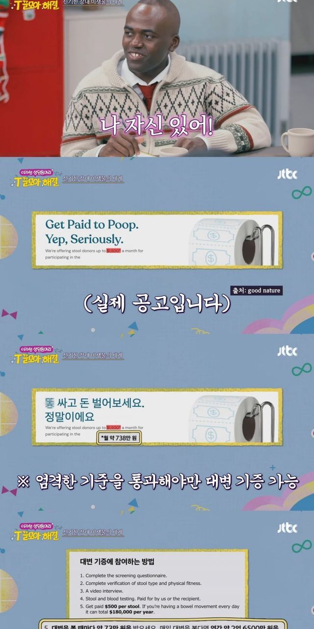 매일 똥 싸서 기증하면 연봉 2억 6천 5백 번다 함 ㄷㄷ 살 안 찌는 체질의 건강한 사람만 가능한 듯
