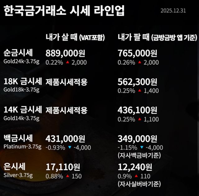 순금 : 매입가 88만 9000원 / 매도가 76만 5000원