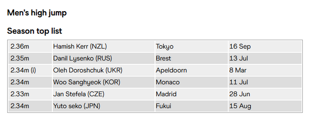 이들은 종목별 톱 리스트와 세계육상선수권대회, 다이아몬드리그 등 주요 대회 성적을 정리하며 남자 높이뛰기 분야에서 우상혁의 이름을 콕 집어 언급했다.