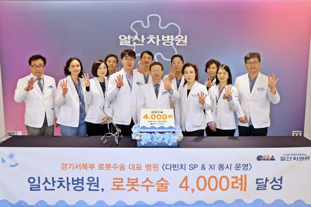 이번 성과는 지난해 12월 로봇수술 3000례를 돌파한 이후 11개월 만에 달성한 기록이다. 일산차병원은 2020년 1월 첫 로봇수술 시행 이후 약 4년 10개월 만에 4000건을 집도하며 가파른 성장세를 이어가고 있다. 특히 전국 로봇수술 시행 의료기관 중 ‘대당 평균 수술 건수 1위’를 기록하며 장비 활용과 의료진 숙련도 측면에서 높은 수준의 효율성과 역량을 입증했다.