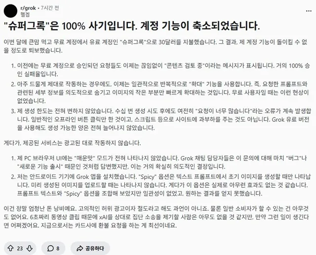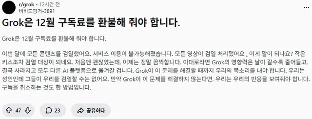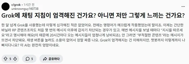 검열이 이제 너무 심해져서 그록을 원하는대로 쓰려고 결제한 사람들이 사기라고 말하는 중