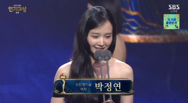 배우 박정연이 ‘2025 SBS 연기대상’에서 신인상을 수상했다.