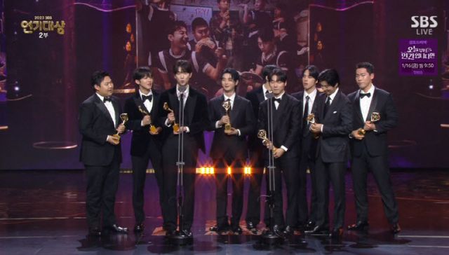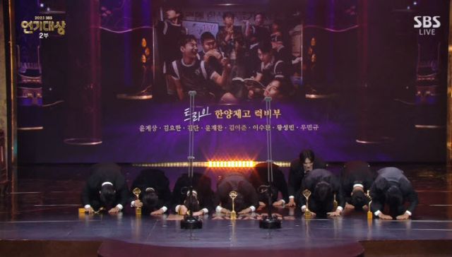 31일 서울 마포구 상암동 SBS 프리즘타워에서 개최된 ‘2025 SBS 연기대상’에서 베스트 팀워크상으로 ‘트라이’ 팀이 트로피를 받아갔다.