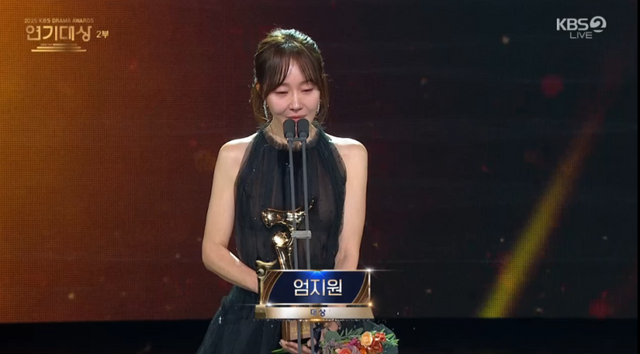 배우 엄지원이 ‘2025 KBS 연기대상’에서 대상을 수상했다.