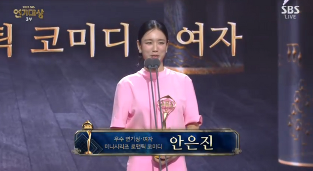 31일 서울 마포구 상암동 SBS 프리즘타워에서는 ‘2025 SBS 연기대상’이 개최됐다. 이날 안은진은 ‘키스는 괜히 해서!’로 미니시리즈 로맨틱 코미디 부문 우수연기상을 수상했다.