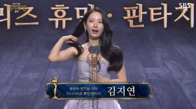 31일 서울 마포구 상암동 SBS 프리즘타워에서는 ‘2025 SBS 연기대상’이 개최됐다. 이날 김지연은 드라마‘ 귀궁’으로 미니시리즈 휴먼/판타지 부문 최우수연기상을 수상했다.