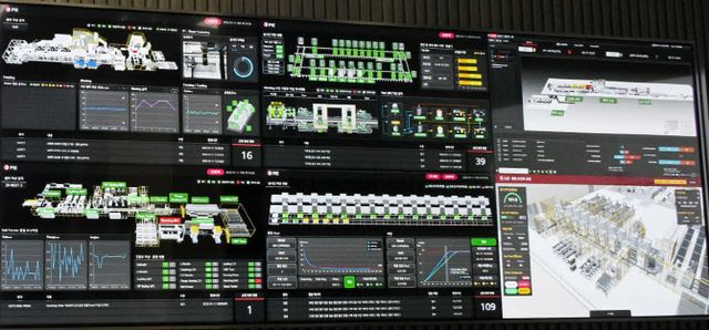 물류공장 곳곳에는 실시간으로 작업 현황을 보여주는 화면이 놓여 있었다. LG는 10분 뒤 공정 상황을 미리 예측해 보여주는 ‘디지털 트윈’과 AI 딥러닝을 적용시켜 설비 상태를 감지하는 사전예지 플랫폼 ‘PIE’(Plug-in for Intelligent Equipment)를 통해 실시간으로 데이터를 제공한다.