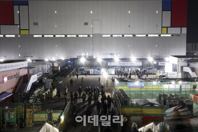 | 22일 오전 경기도 평택시 삼성전자 평택 캠퍼스 건설 현장에 근로자들이 출근하고 있다. (사진=이영훈 기자) |