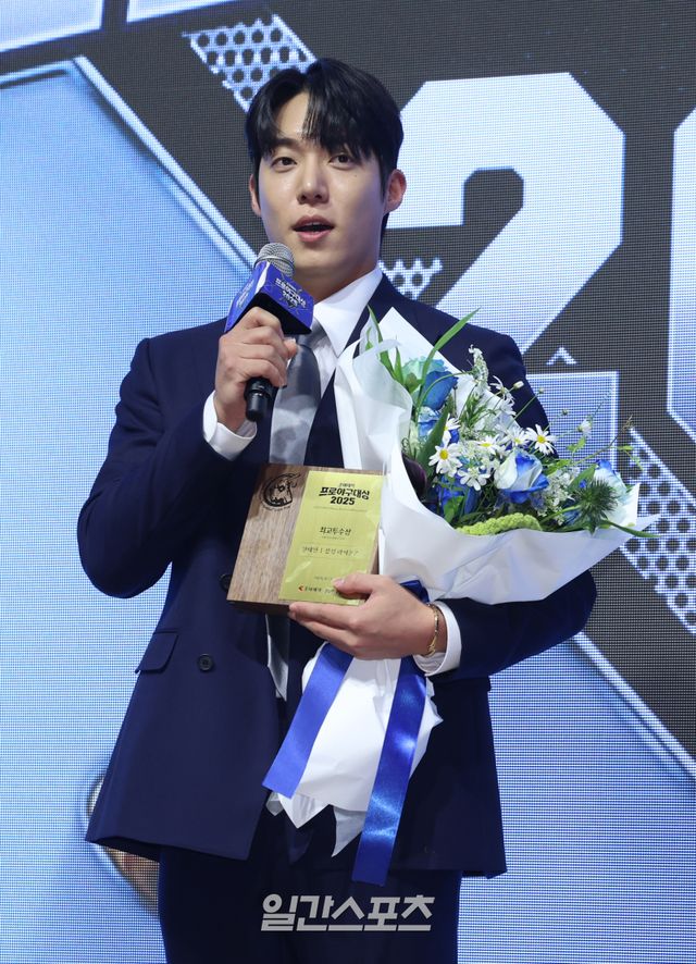 삼성의 '푸른 피 에이스' 투수 원태인도 우승을 외쳤다. 지난해 27경기에 나와 12승 4패 평균자책점(ERA) 3.24를 거둔 원태인은 국내 선수 다승 1위·ERA 2위에 오르며 본지와 조아제약이 수상하는 '2025 조아제약 프로야구 대상' 우수투수상을 수상했다.