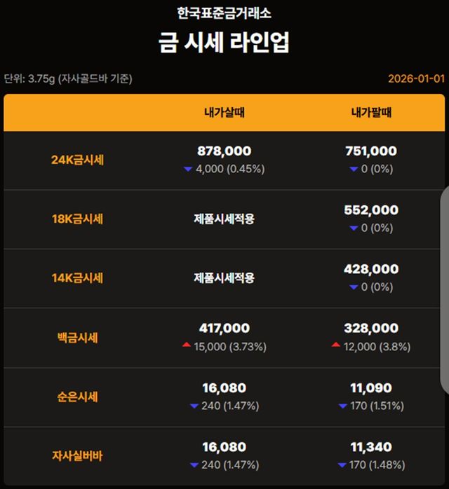 순금(24K) : 매입가 87만 9000원 / 매도가 75만 원