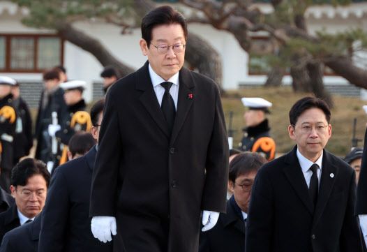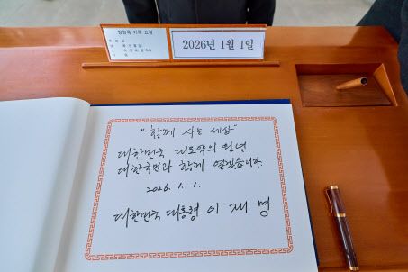 이 대통령은 새해 벽두부터 경제 성장을 최우선 과제로 제시했다. 올해를 성장률 반등의 원년으로 삼겠다는 각오다. 이날 서울국립현충원 참배 후 남긴 방명록에서 이 대통령은 ‘함께 사는 세상, 대한민국 대도약의 원년, 대한민국과 함께 열겠다’고 적었다. 지난 6월 4일 대통령 당선 직후 남겼던 ‘함께 사는 세상, 국민이 주인인 나라, 국민이 행복한 나라’와 비교하면 경제 발전 메시지를 더 강하게 드러냈다.