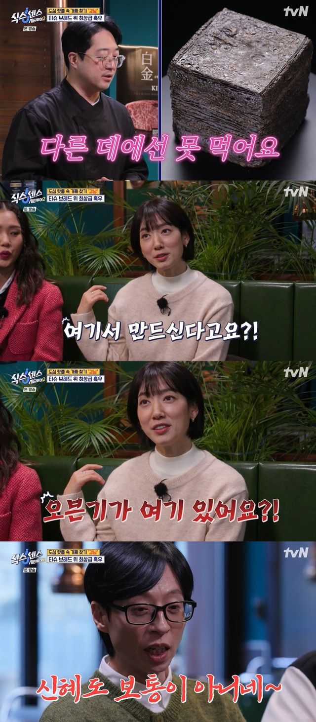 이때 박신혜는 곧바로 “여기서 직접 만드는 거라고요? 오븐기가 있어요?”라고 질문하며 핵심을 찔렀다. 사장이 “따로 업체 공장이 있다”고 말을 바꾸자, 유재석은 “신혜도 보통 아니네”라며 감탄을 드러냈다.