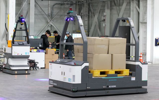 이 본부장은 “AGV 1대를 도입할 경우 24시간 무중단 운영으로 3교대의 인력을 대체해 1년 정도면 투자비 회수를 기대할 수 있다”며 “아직 사람의 개입이 완전히 배제되는 무인화보다는 협업하는 단계이지만, 로봇의 지속적인 학습과 이에 따른 운영 데이터가 축척되면 미래엔 로봇 자체가 연산·학습·판단·행동을 스스로 하는 기술혁신이 가능해질 것”이라고 말했다.