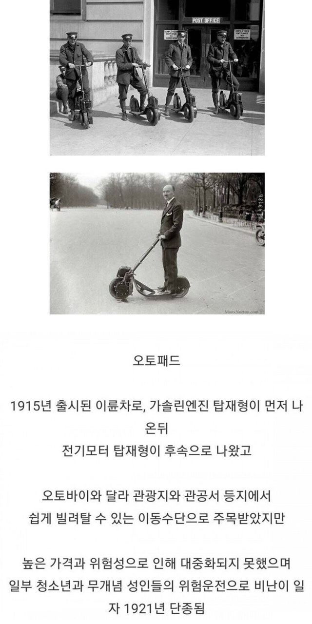 100년 전에 단종된 가솔린 엔진으로 움직이던 전동 킥보드???