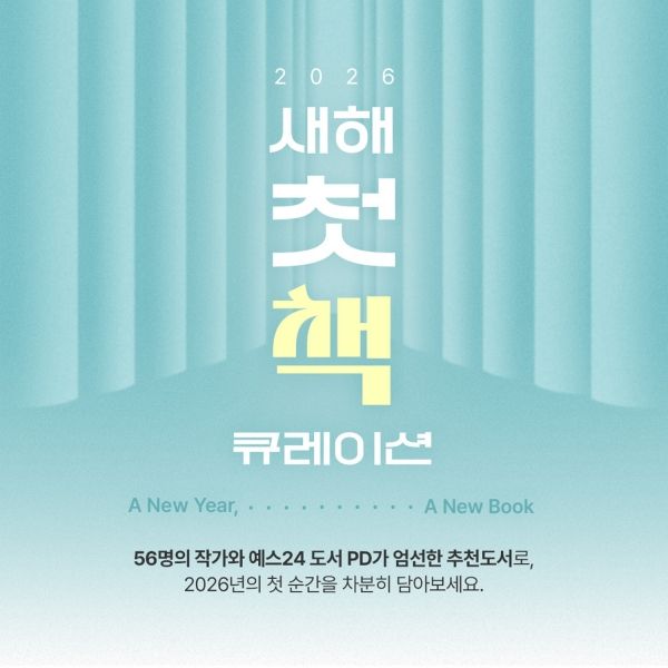 이번 큐레이션과 함께 작가들이 직접 꼽은 추천 문장을 매주 받아볼 수 있는 ‘큐레이션 문자 배달’ 이벤트도 마련됐다. 문자 알림 신청자 중 100명을 추첨해 YES상품권 1천원을 증정한다. 이와 함께 독서지원금을 선물하는 ▲나의 2026 새해 첫 책 공유 이벤트 ▲새해 복주머니 행운 당첨 이벤트 등도 진행한다.