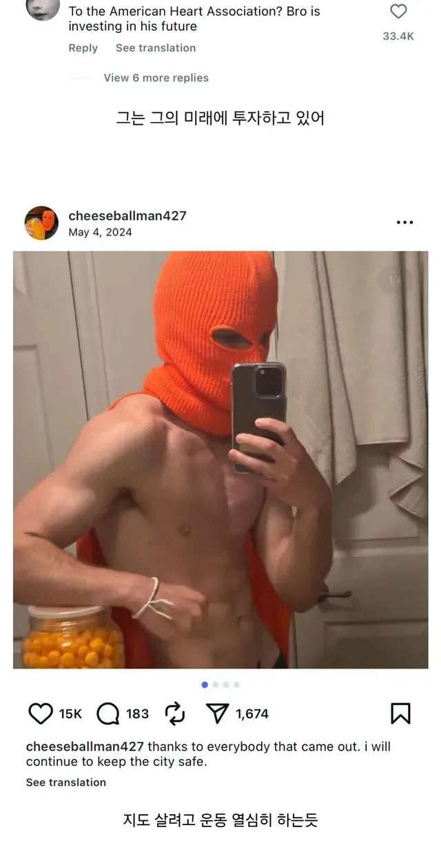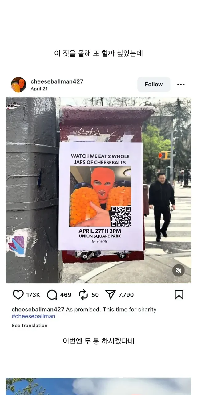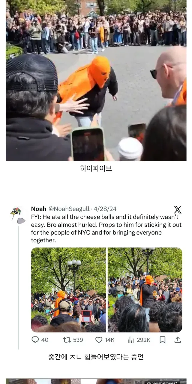 [스압] 사람들 앞에서 치즈볼 한 통을 다 비운 남자,,