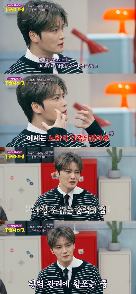 최근 방송된 JTBC 예능 프로그램 ‘이과생 상담동아리-T끌모아 해결’에는 가수 조째즈와 김재중이 게스트로 출연해 노화에 대해 이야기를 나눴다.