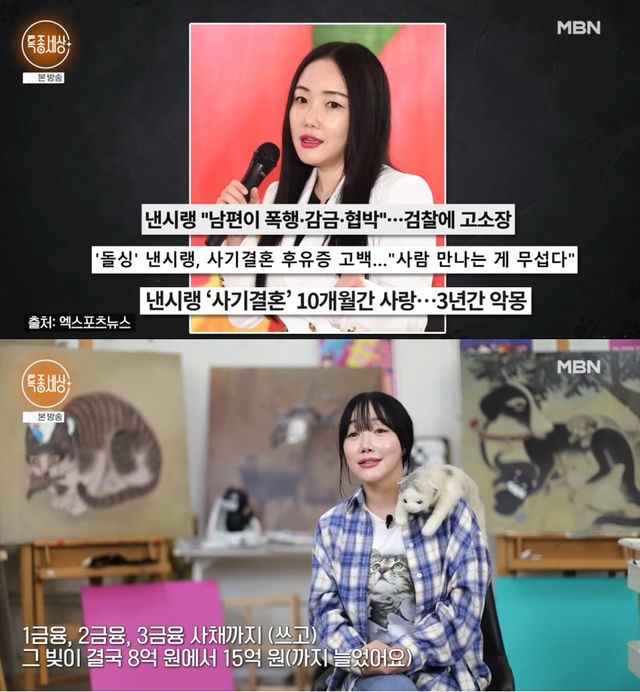 어머니가 안치된 봉안당을 찾아 "나도 남들처럼 가족이 함께하는 따뜻한 크리스마스를 보내고 싶다"며 오열한 낸시랭은 집 월세가 밀리고 카드가 끊겼던 생활고도 털어놨다. 그는 "결론적으로 제가 떠안은 빚이 8억 원에서 결국 15억 원까지 불어났다"고 전해 충격을 안겼다.