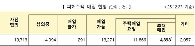 한국토지주택공사(LH)가 매입한 전세사기 피해 주택은 12월 23일 기준 총 4,898호로 집계됐다. 국토교통부는 이 가운데 4,137호가 지난해 6월 이재명 정부 출범 이후 매입된 물량이라고 설명했다.