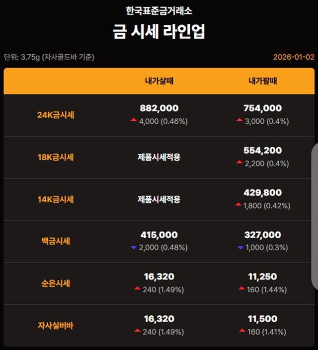 순금 : 매입가 88만 2000원 / 매도가 75만 4000원
