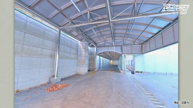 주차장 벽을 허물고 만들었다는 비밀 통로에는 불투명한 벽과 비를 피할 수 있는 지붕이 설치돼 있었다. 이를 통해 건물 안으로 들어가면 ‘폐문’, ‘관계자 외 출입금지’라고 쓰여있는 문이 있었다. 지하 1층으로 내려갈 수 있는 문이었다.