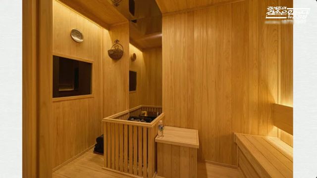 편백나무로 꾸며진 시설 가운데는 스토브와 건식 사우나용 돌무더기가 있고, 사우나를 하는 동안 볼 수 있는 TV도 마련돼 있었다.