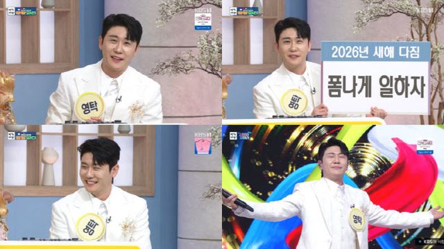 영탁은 “새해 인사를 ‘아침마당’을 통해 드릴 수 있어 감사하다”며 “21년째 노래하고 있고, 가끔 연기도 하고 프로듀싱, 작곡, 작사도 하고 있다”고 자신을 소개했다. 또한 2026년 새해 다짐으로 “폼나게 일하자”라는 한마디를 전하며 긍정적인 에너지를 전했다.